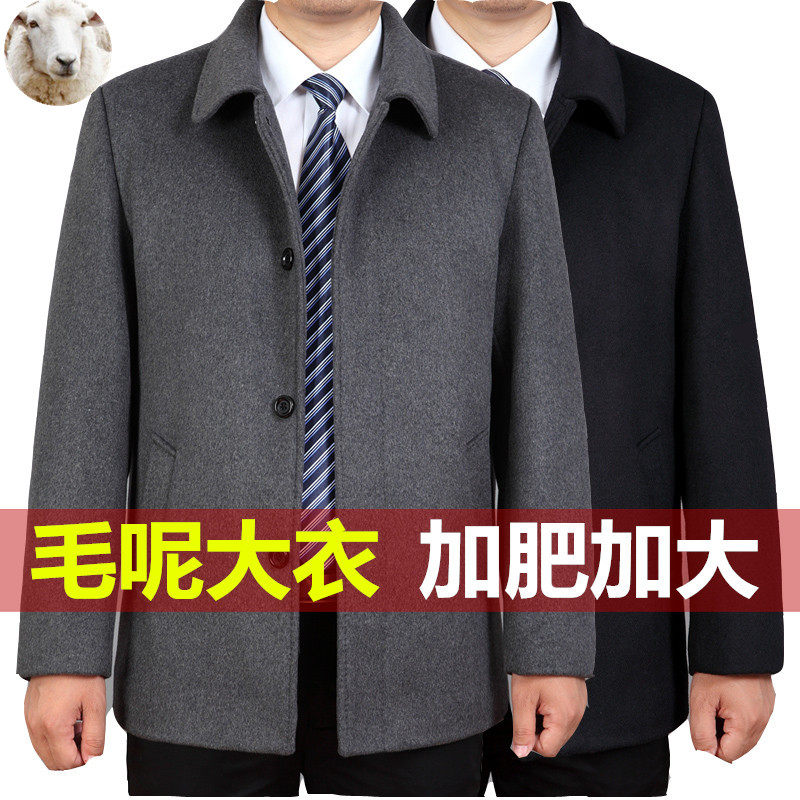 中老年男毛呢大衣加肥加大码秋冬厚款爸爸装羊毛绒中长版休闲外套