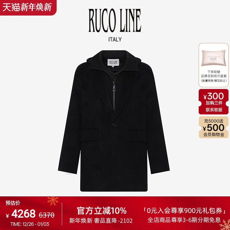 【绵羊毛】Ruco Line如卡莱男毛呢大衣呢子中长款连帽外套