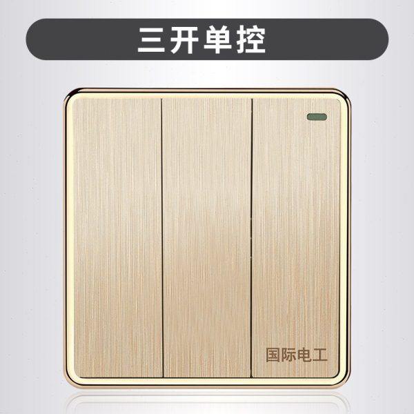 【3D拉丝】TEP墙壁开关插座面板 118型 三位三开双控开关 香槟金