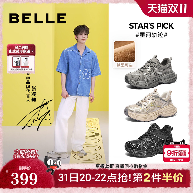 张凌赫同款百丽男鞋星河轨迹高帮加绒厚底增高老爹鞋子男士运动鞋