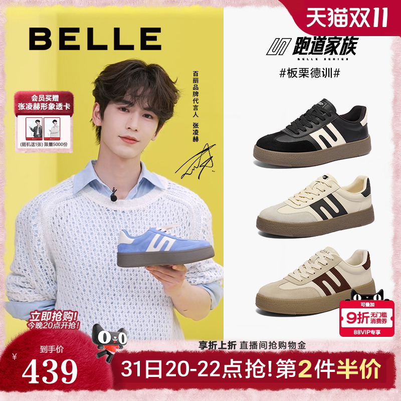张凌赫同款百丽男鞋板栗德训鞋休闲鞋厚底增高运动板鞋8FB01AM4预