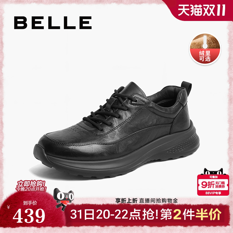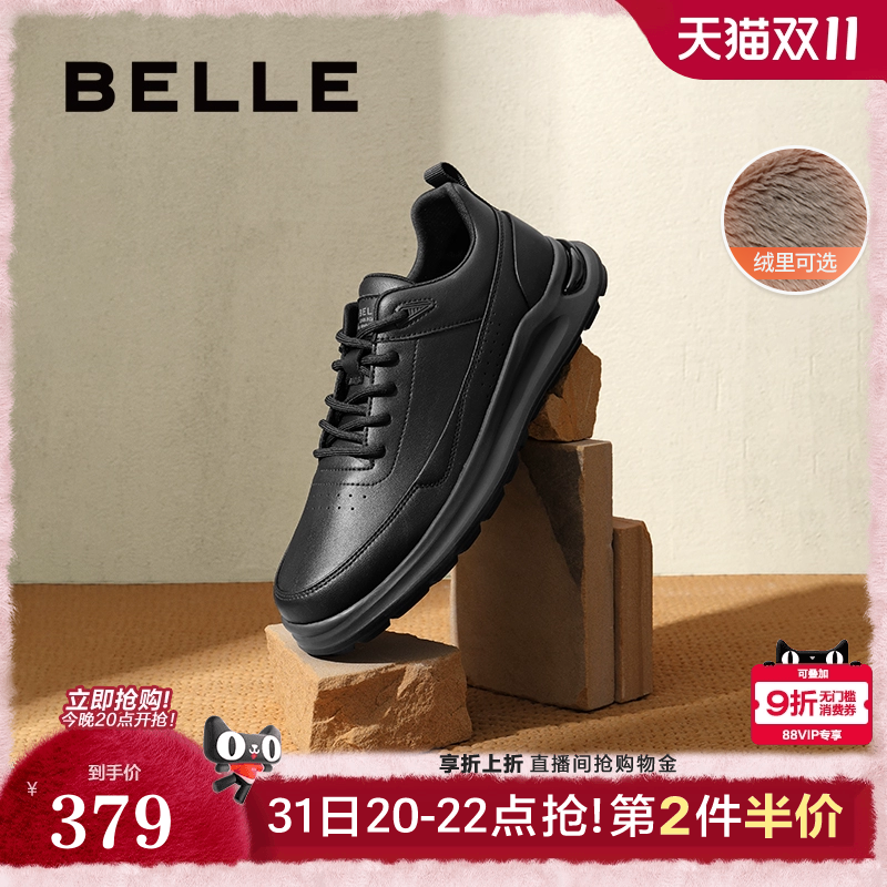 百丽男士休闲加绒运动鞋软底冬季新款增高真皮商务健步鞋A1354AM4