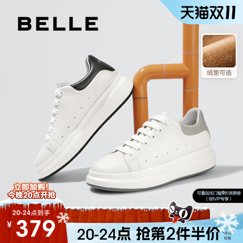 百丽男士休闲真皮商务小白鞋冬季运动鞋厚底增高板鞋加绒A0615AM2