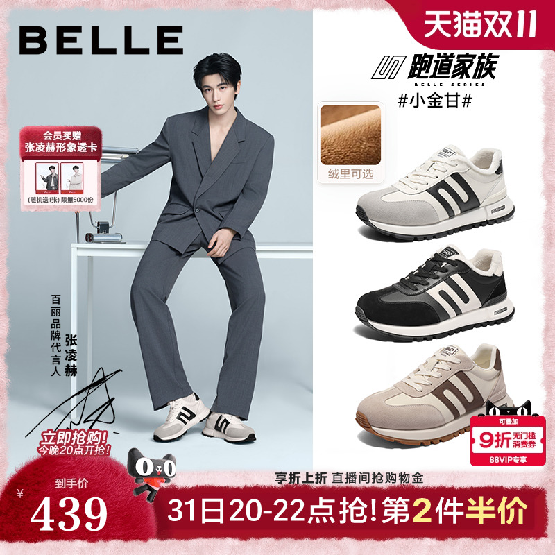 张凌赫同款百丽男鞋小金甘2.0增高加绒保暖冬休闲鞋运动鞋子8PT01