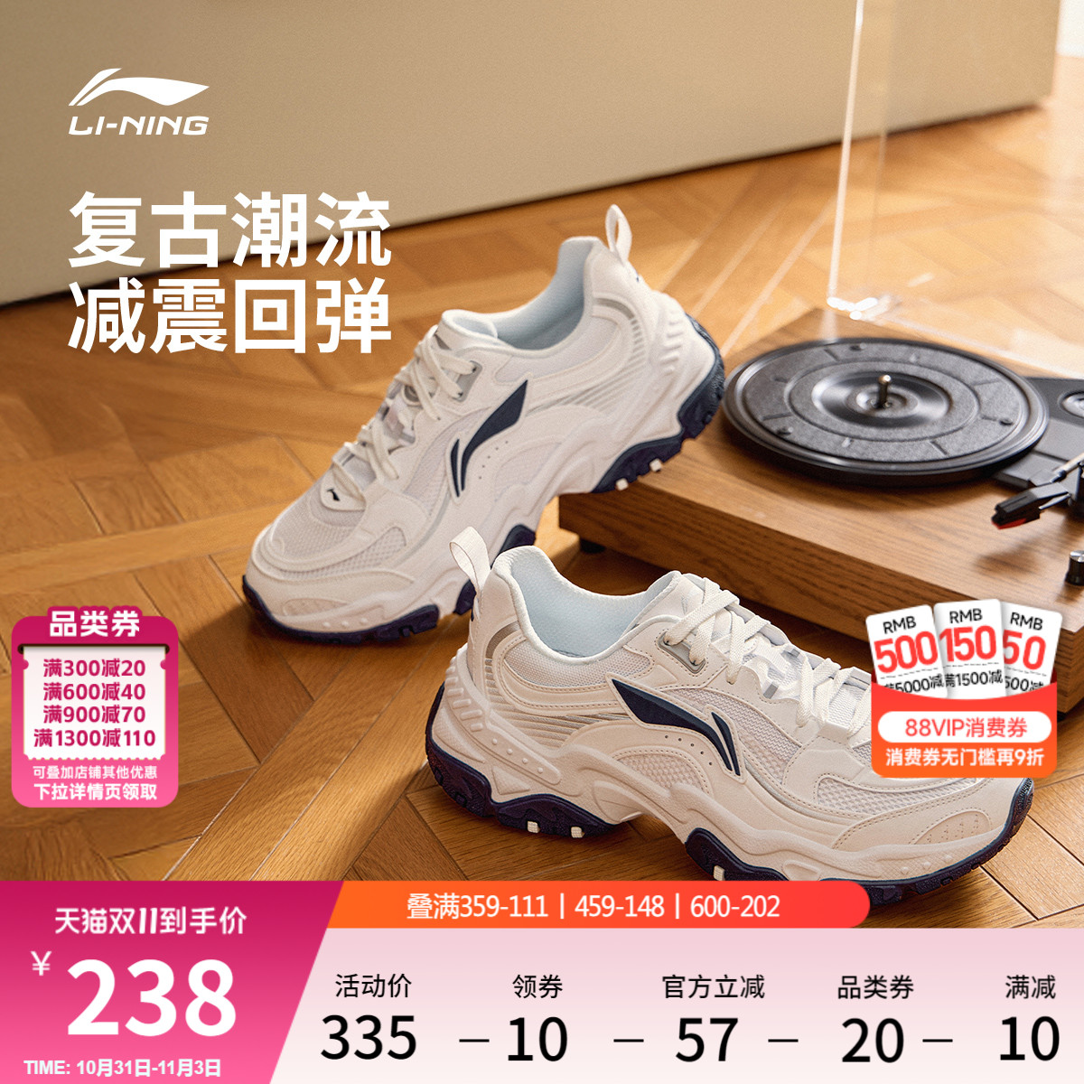 李宁红糖丨休闲鞋男鞋2025新款复古老爹鞋减震回弹厚底增高运动鞋