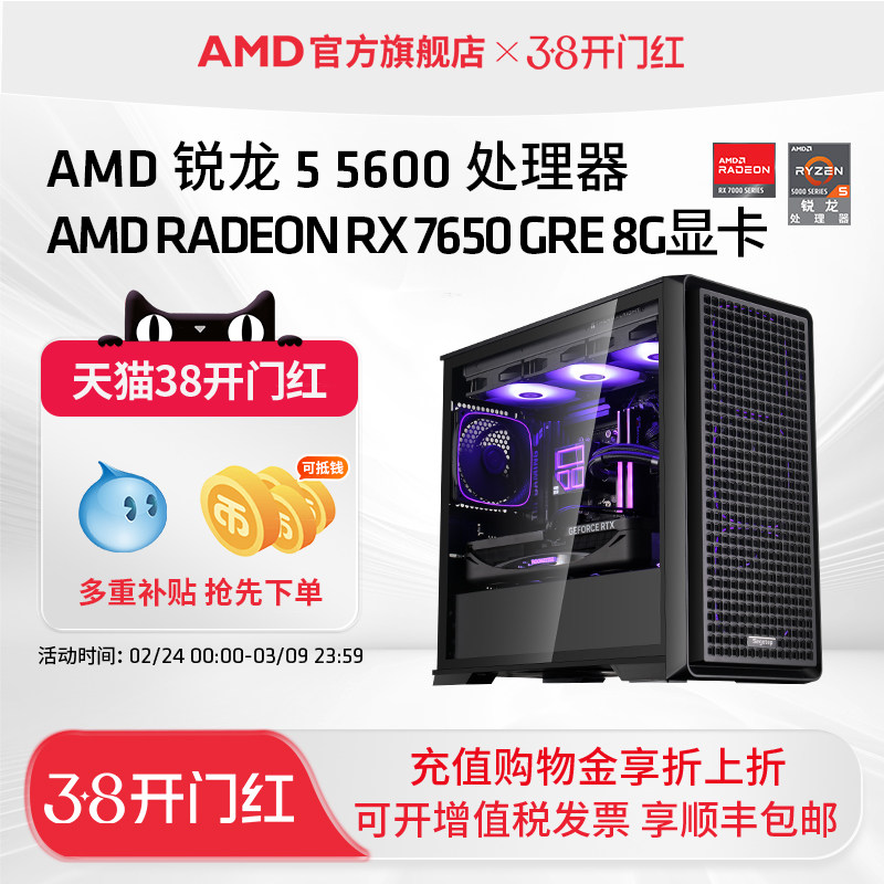 AMD锐龙R5 5600/RX7650GRE/9060/5060 8GB显卡3A电竞主机直播LOL吃鸡台式DIY组装机电脑套件