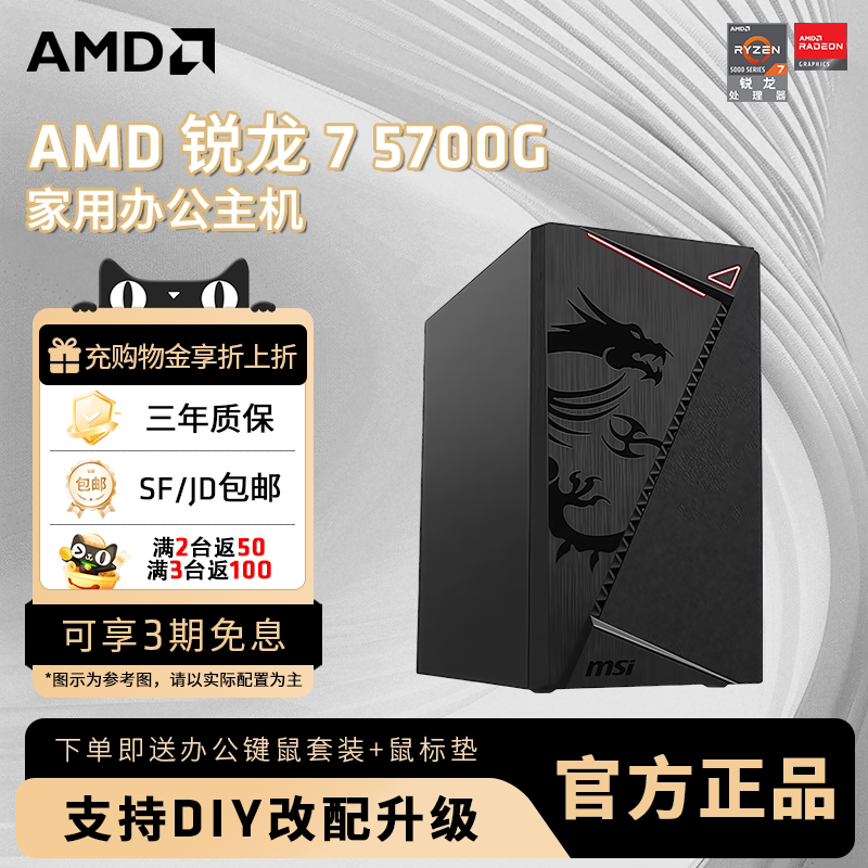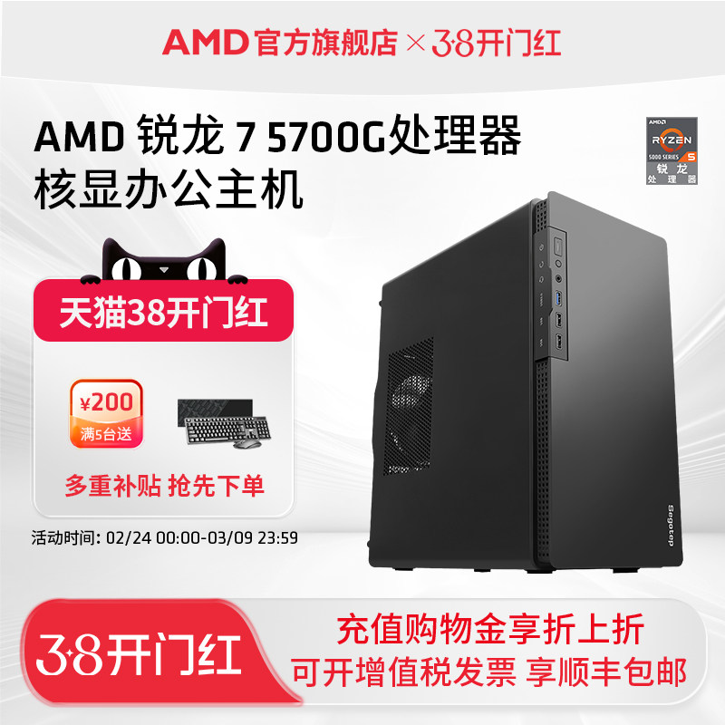 AMD锐龙R7 5700G处理器核显办公主机八核diy全套台式整机企业采购视频剪辑网课游戏lol DNF设计CADPS电脑套件