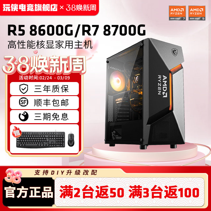 AMD锐龙5 8600G/8500G核显办公家用商务炒股游戏主机AI LOL CF台式组装机直播DIY整机网游电脑带显示器
