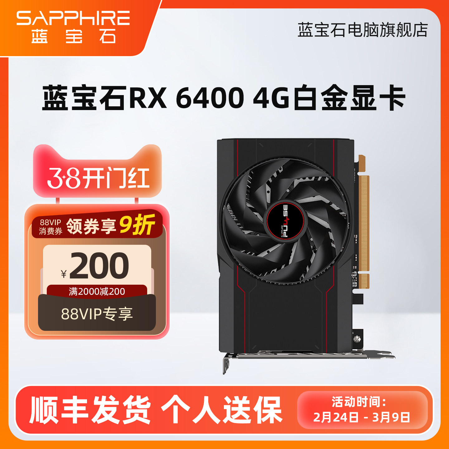 AMD蓝宝石RX6400 4G白金游戏LOL CF全新台式机电脑主机独立显卡