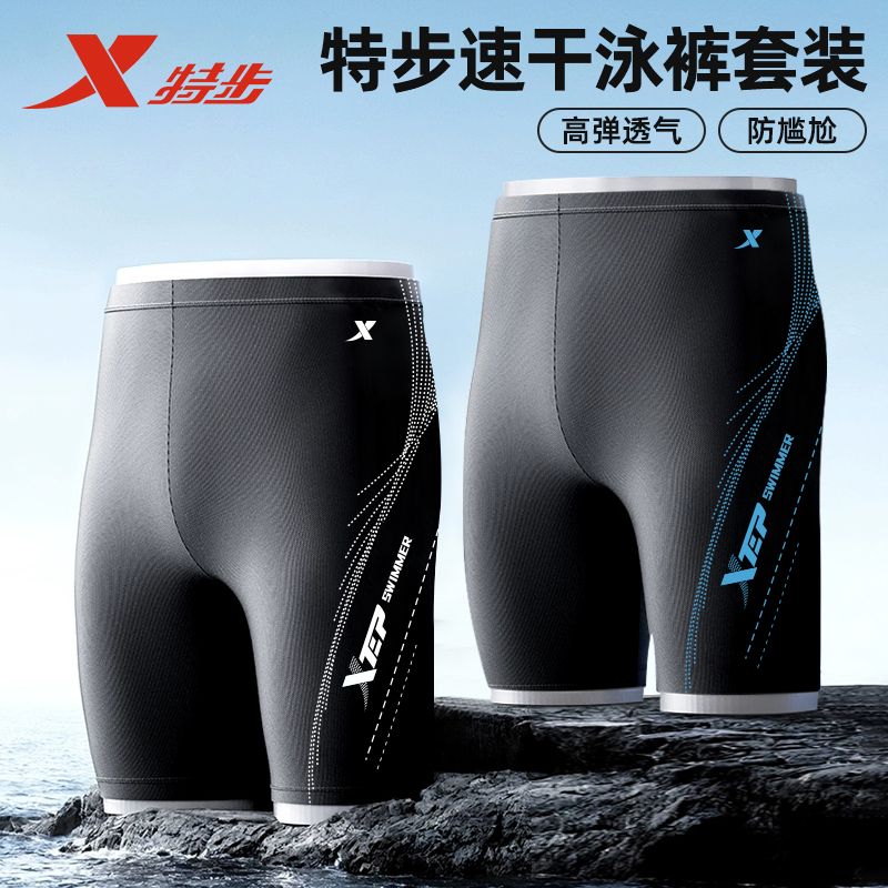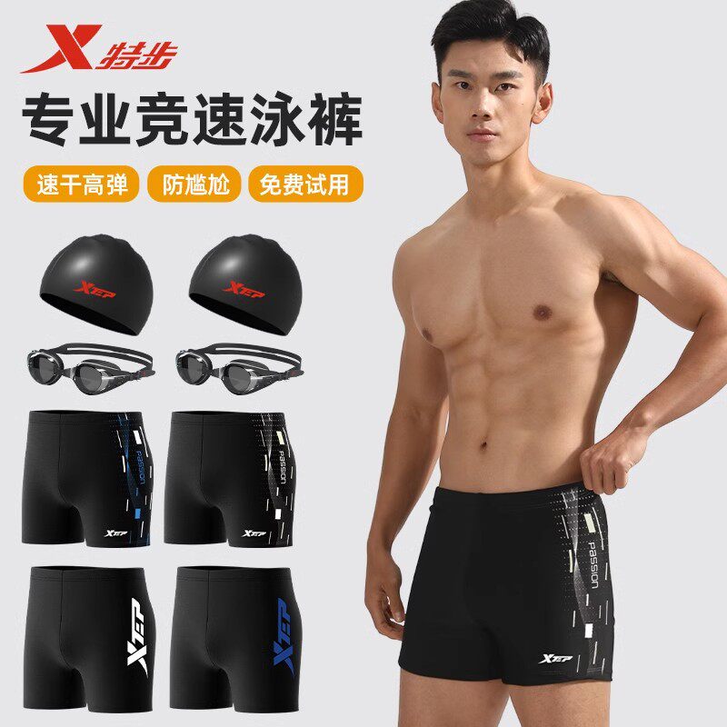 特步泳裤男款2025新款成人防尴尬男士游泳裤泳帽泳镜三件套装泳衣