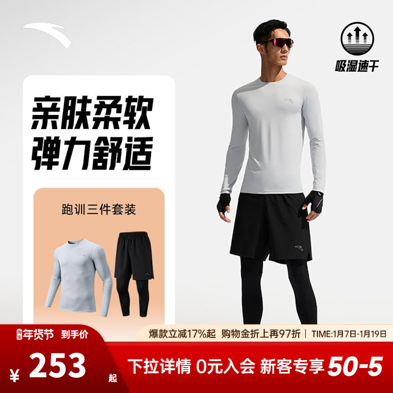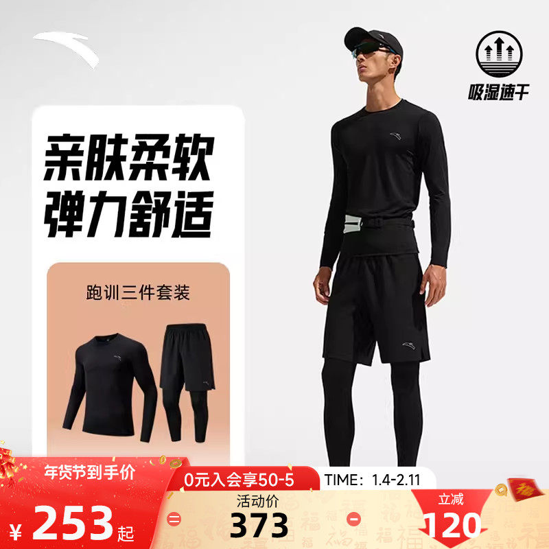 安踏运动套装男款2025新款吸湿速干运动三件套弹力透气跑步训练服