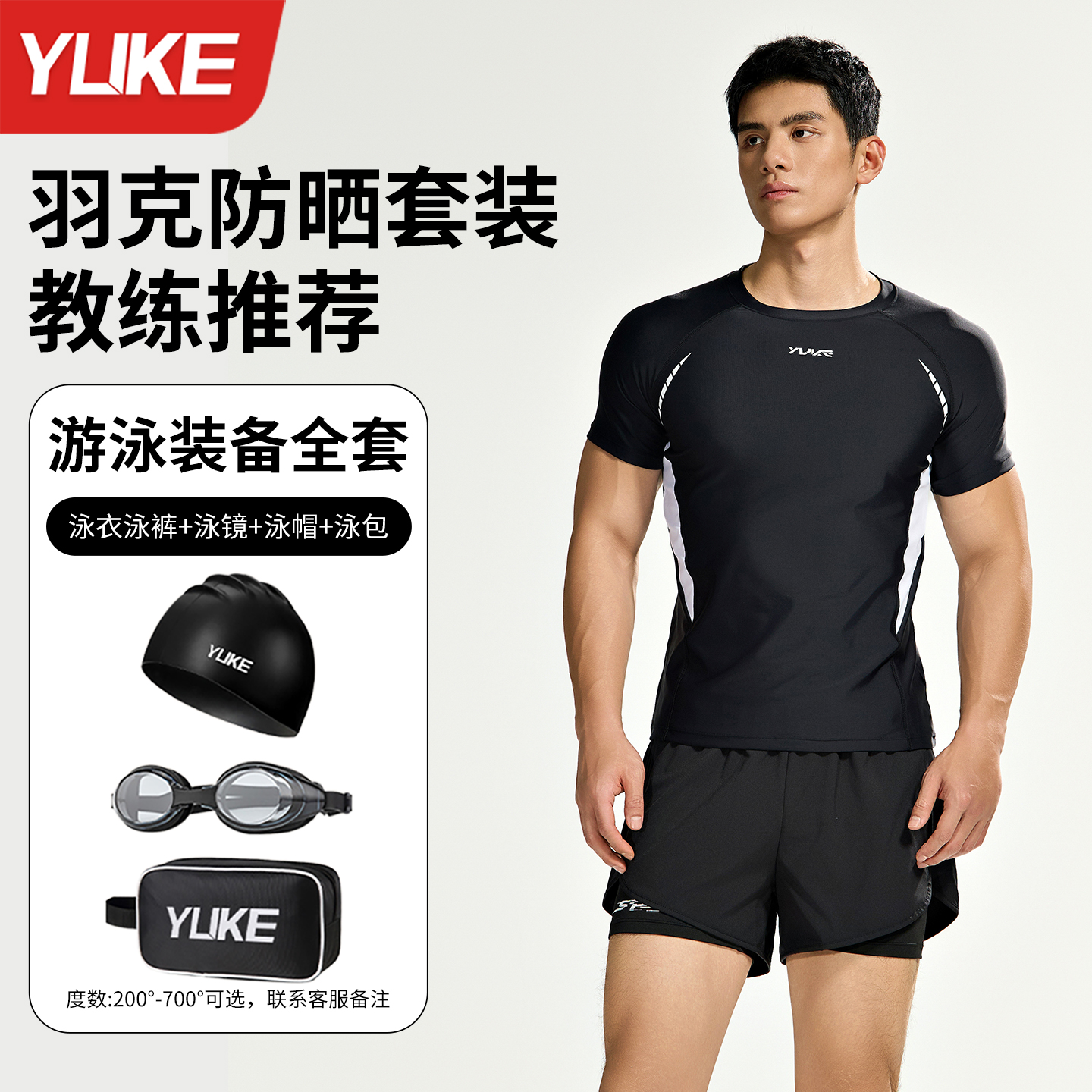 泳衣套装男士男款泡温泉保暖冬季游泳装备全套泳裤泳帽泳镜三件套
