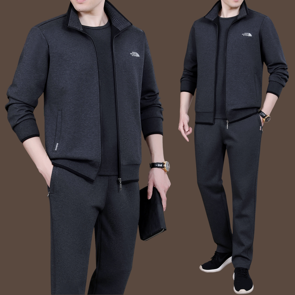 爸爸装秋季休闲运动套装男款三件套2025新款春秋中老年外套运动服