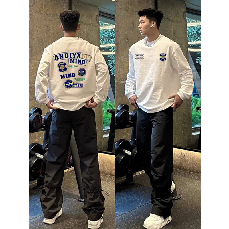 美式复古街头潮牌长袖t恤男秋宽松ins欧美风oversize薄款上衣卫衣