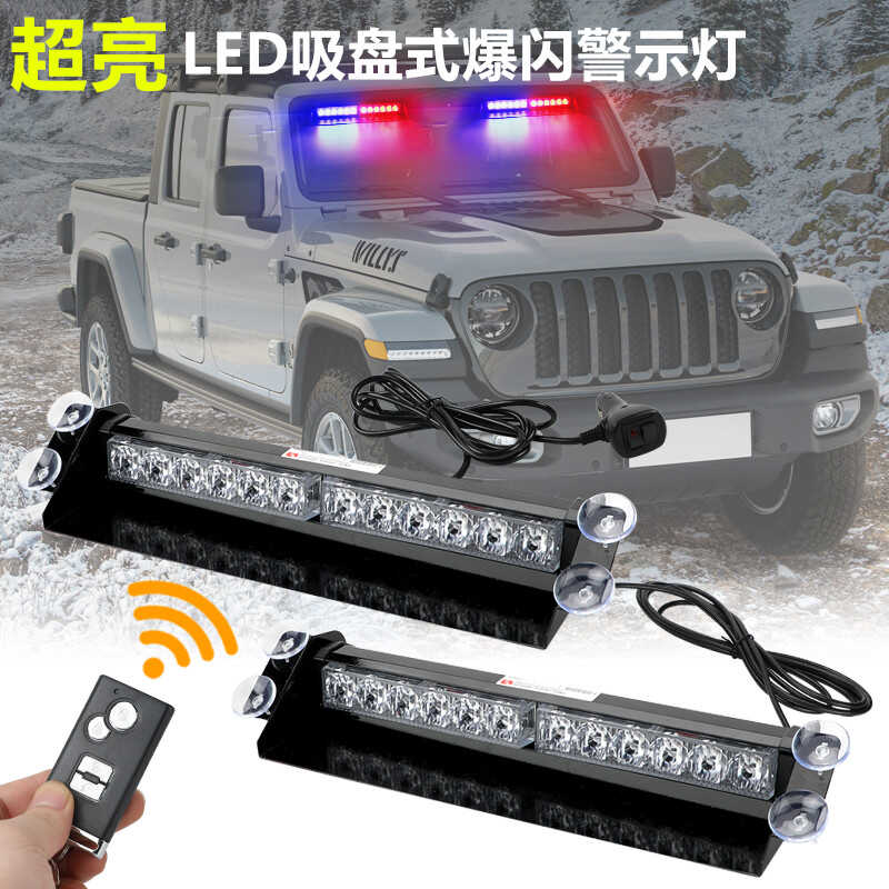 新款车内灯进口 超亮雷电led爆闪灯汽车镭射警示灯铲子吸盘开道灯
