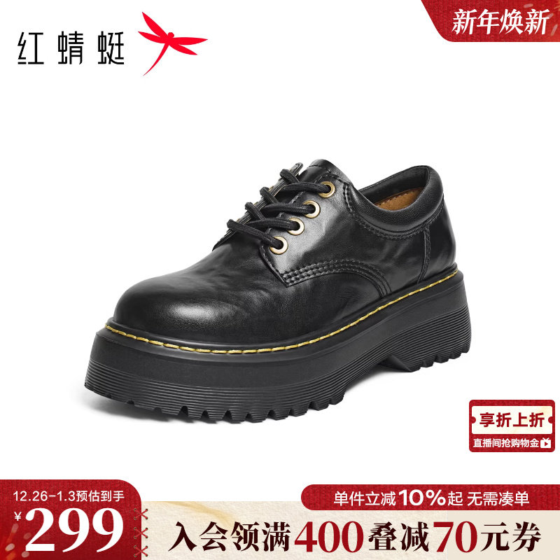 红蜻蜓厚底乐福鞋女2025冬款女鞋增高马丁靴单鞋复古英伦风小皮鞋