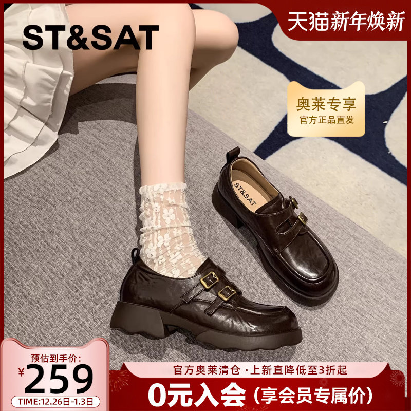 星期六厚底乐福鞋女鞋棕色法式复古2025秋冬新款英伦风小皮鞋单鞋