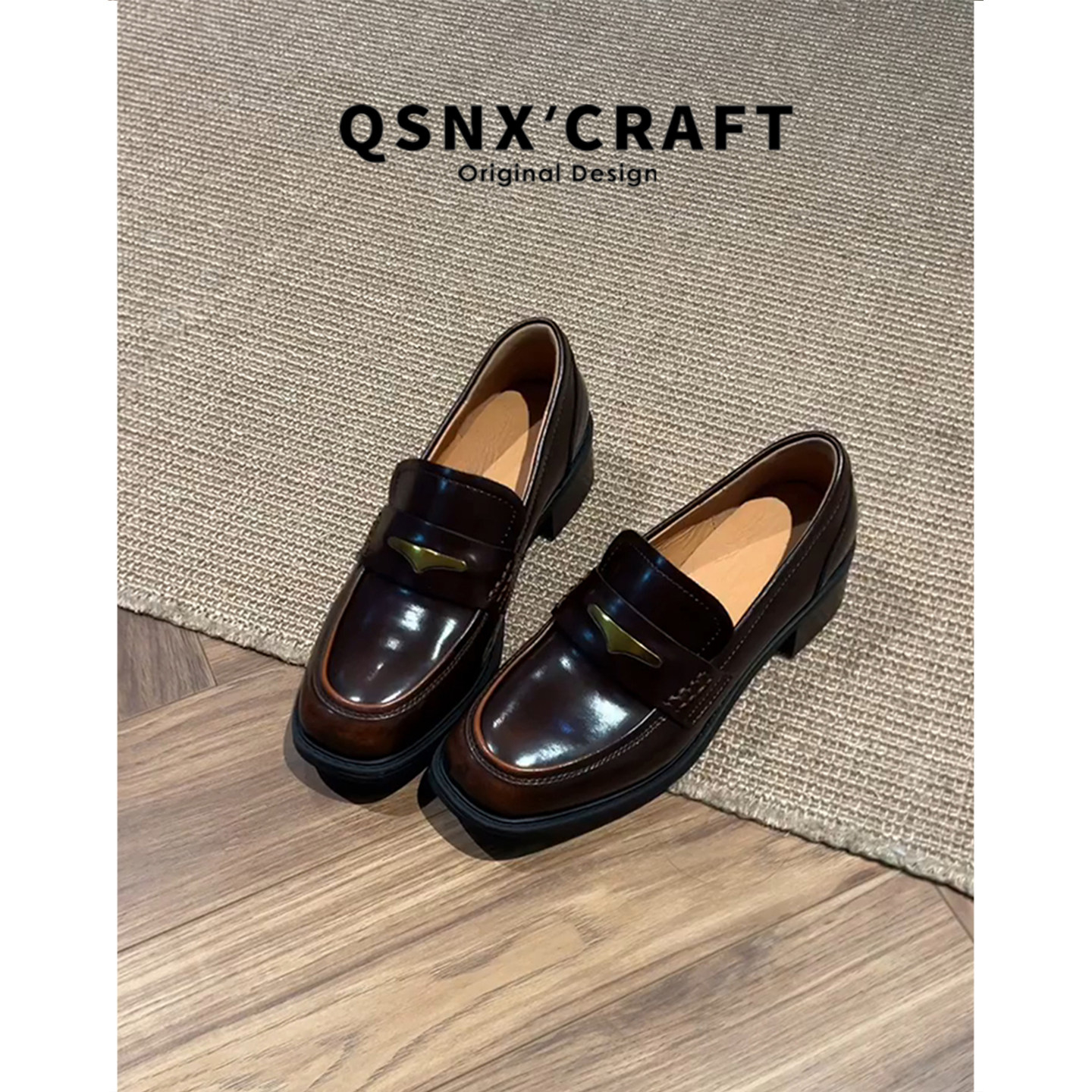 羊皮版~棕色金币乐福鞋女通勤配裙子jk单鞋厚底英伦风复古小皮鞋