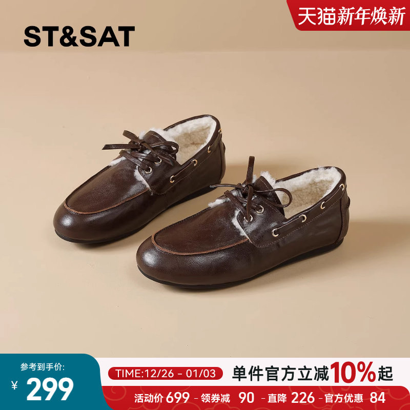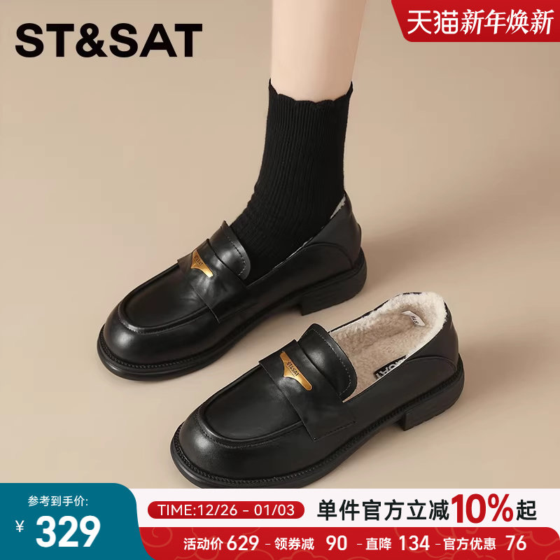 星期六平底加绒乐福鞋女2025冬季新款毛毛鞋复古英伦风小皮鞋棉鞋