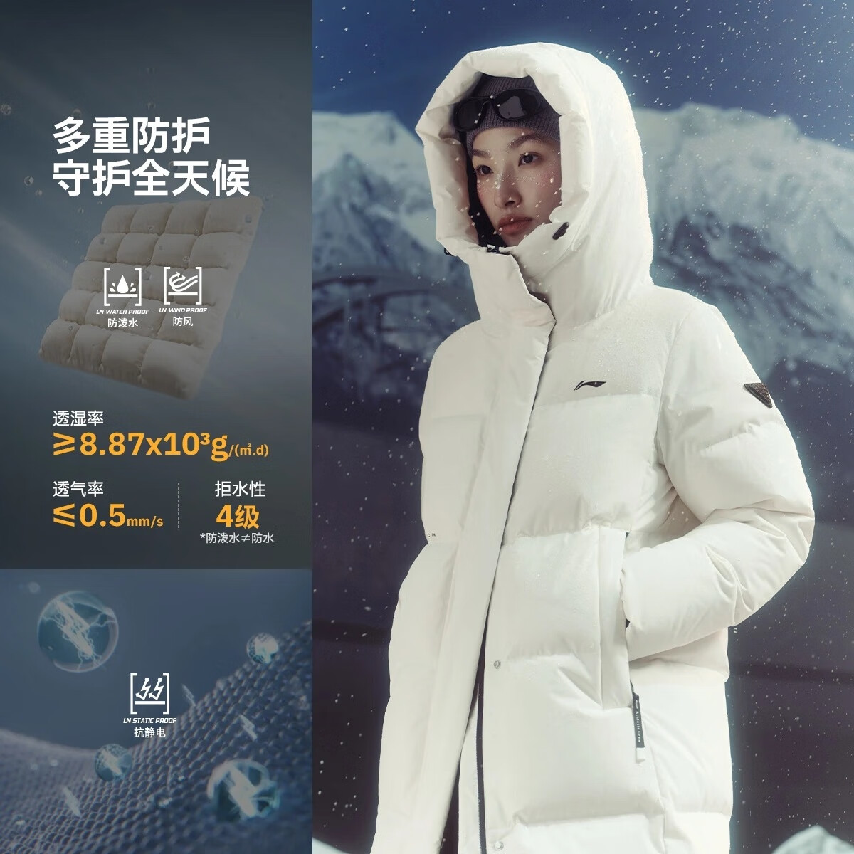 李宁羽绒服时尚女士长款2025冬季防风透湿保暖连帽羽绒服时尚AYMU