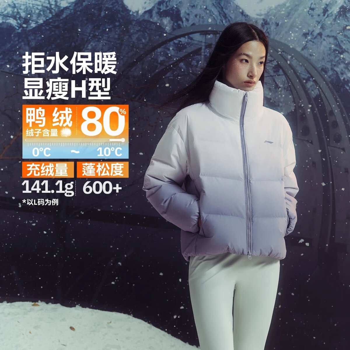 李宁羽绒服时尚女2024冬季运动潮流系列防泼水鸭绒羽绒服时尚AYMU