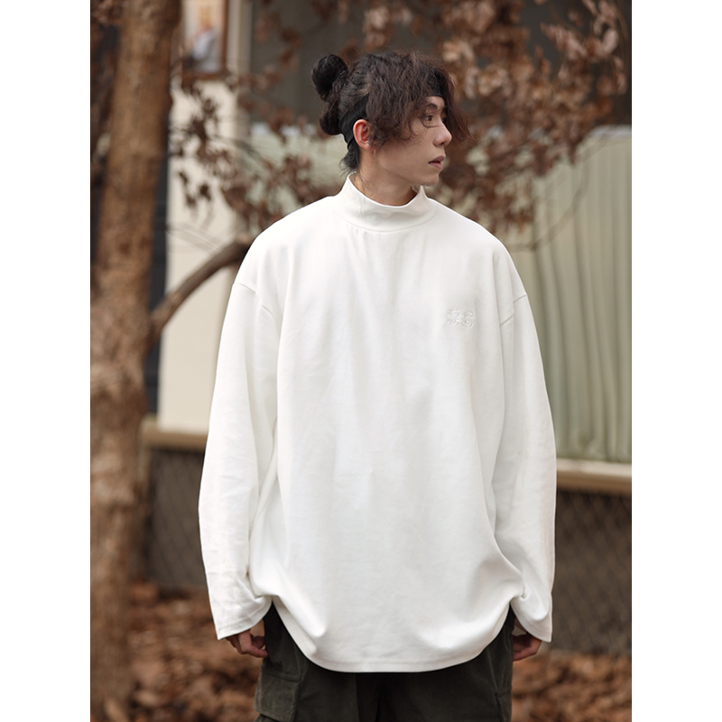 水曜日定休 原创秋冬日系高领打底衫长袖T恤衫男宽松纯色情侣T恤