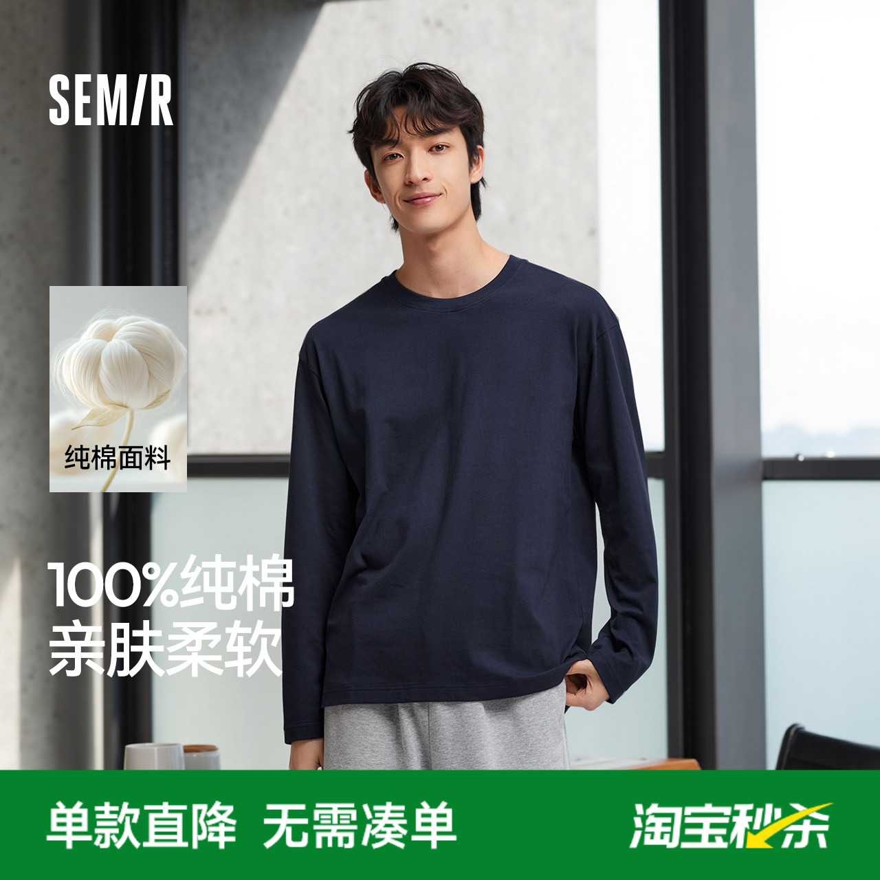 [商场同款]森马长袖T恤男纯棉打底衫2025春秋新款纯色内搭情侣款