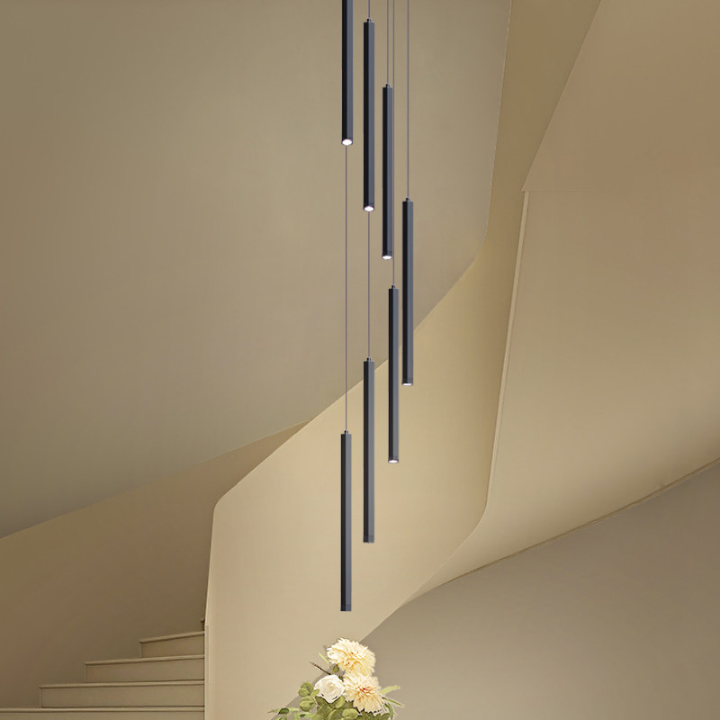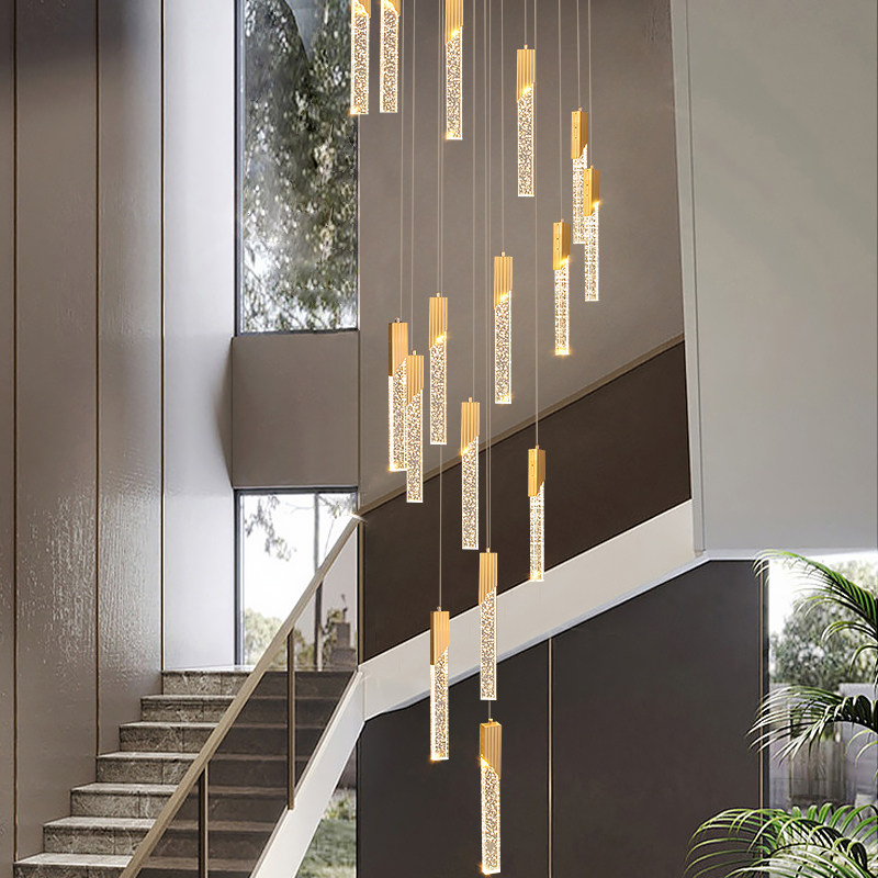 复式楼梯吊灯loft别墅楼中楼酒店大堂客厅高级感超长旋转直筒吊灯