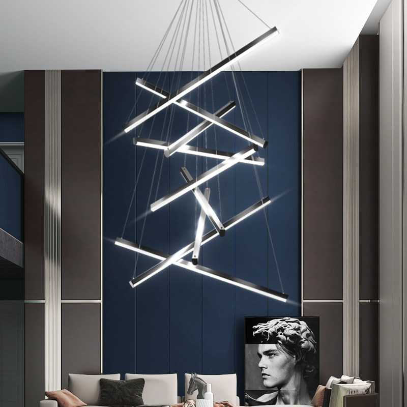 复式楼梯吊灯 简约现代别墅挑空客厅极简创意个性长条led线条灯具