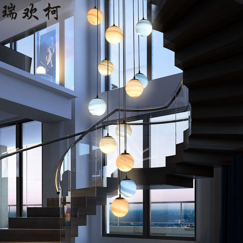 创意个性 流浪地球复式楼梯吊灯 长吊灯 楼梯灯 loft挑高中空别墅