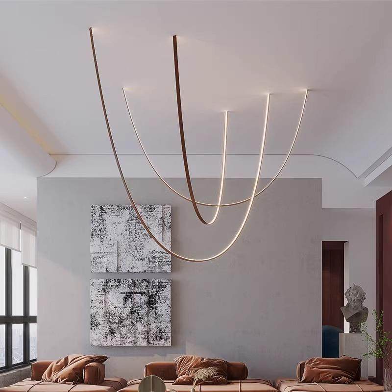 极简线条餐厅吊灯创意皮带灯艺术别墅客厅挑空loft复式楼梯吊灯