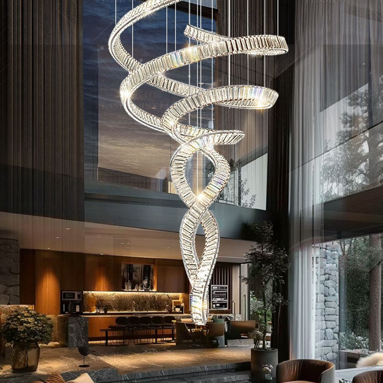跨境简约水晶灯复式楼梯吊灯 客厅吊线灯旋转长吊灯别墅跃层吊灯