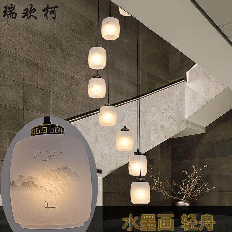 楼梯吊灯简约创意新中式复式楼别墅中空客厅挑空旋转楼梯间长吊灯