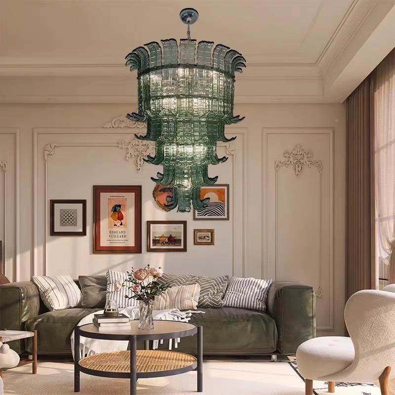 法式MURANO挑空客厅灯轻奢复古别墅复式楼梯吊灯美式玻璃主卧室灯