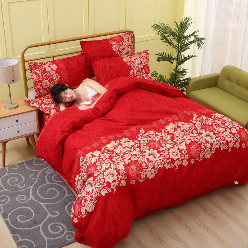 四件套床上用品磨毛被套床单枕套床上婚庆四件套学生宿舍三件套新
