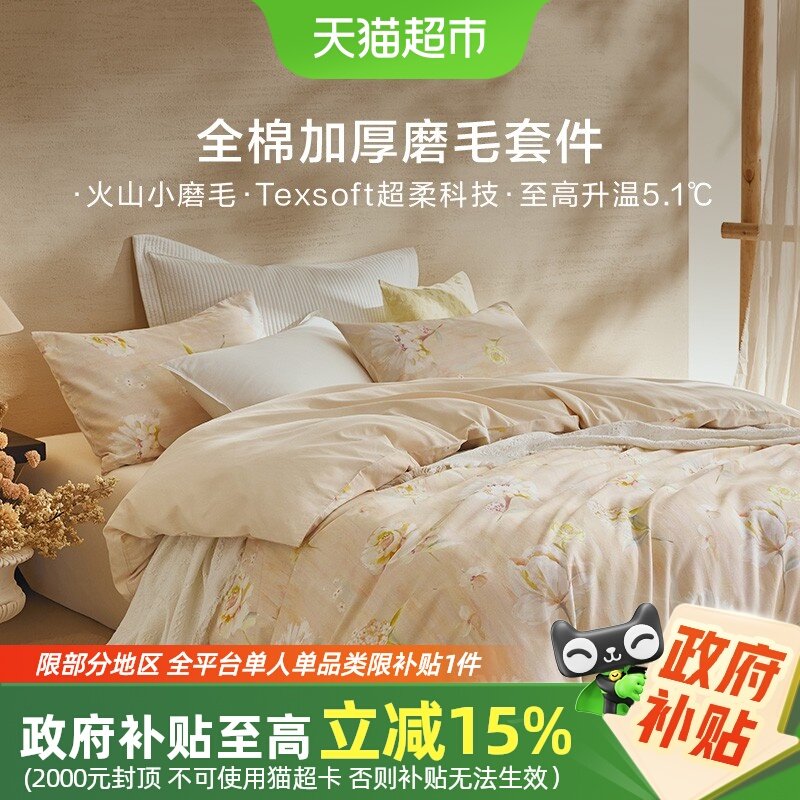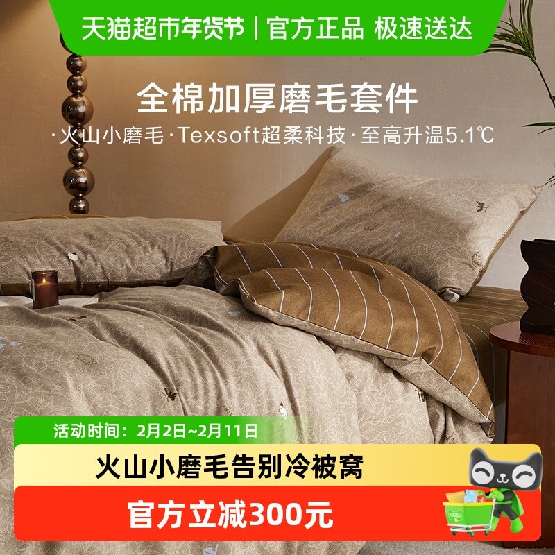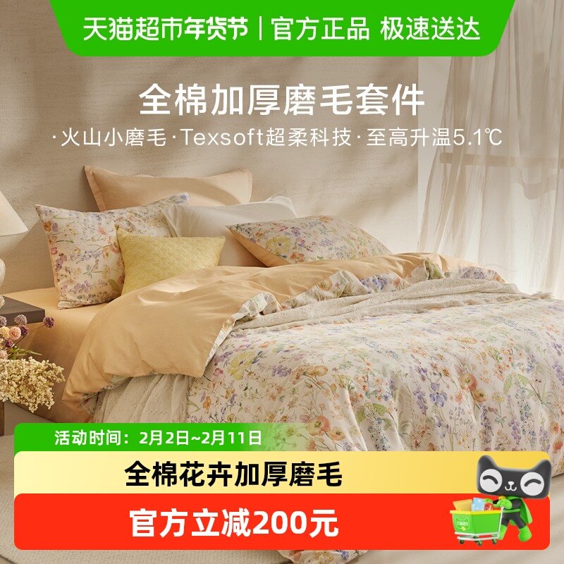 罗莱家纺旗舰店秋冬床上用品磨毛纯棉加厚床单被套全棉被罩四件套