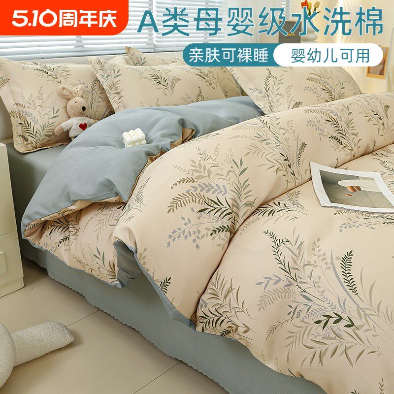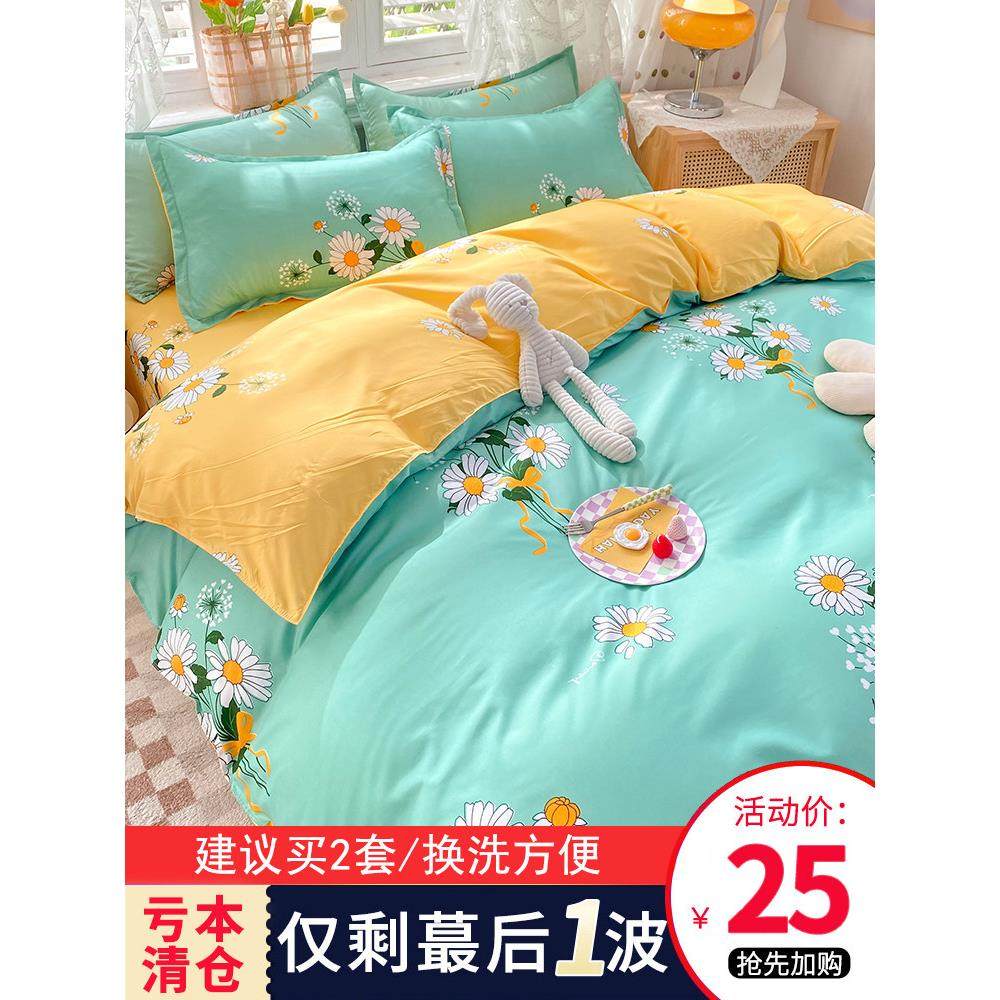 四件套被套学生宿舍床单人被子三件套纯水洗棉床上用品磨毛被罩夏