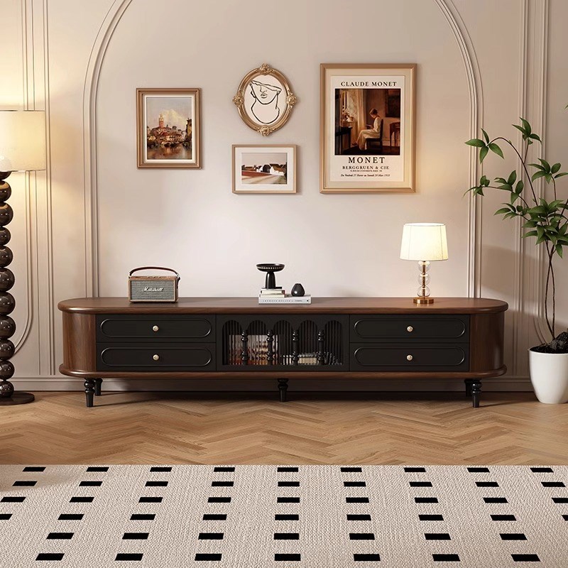 法式复古实木中古电视柜胡桃黑色美式客厅茶几电视机柜组合储物柜