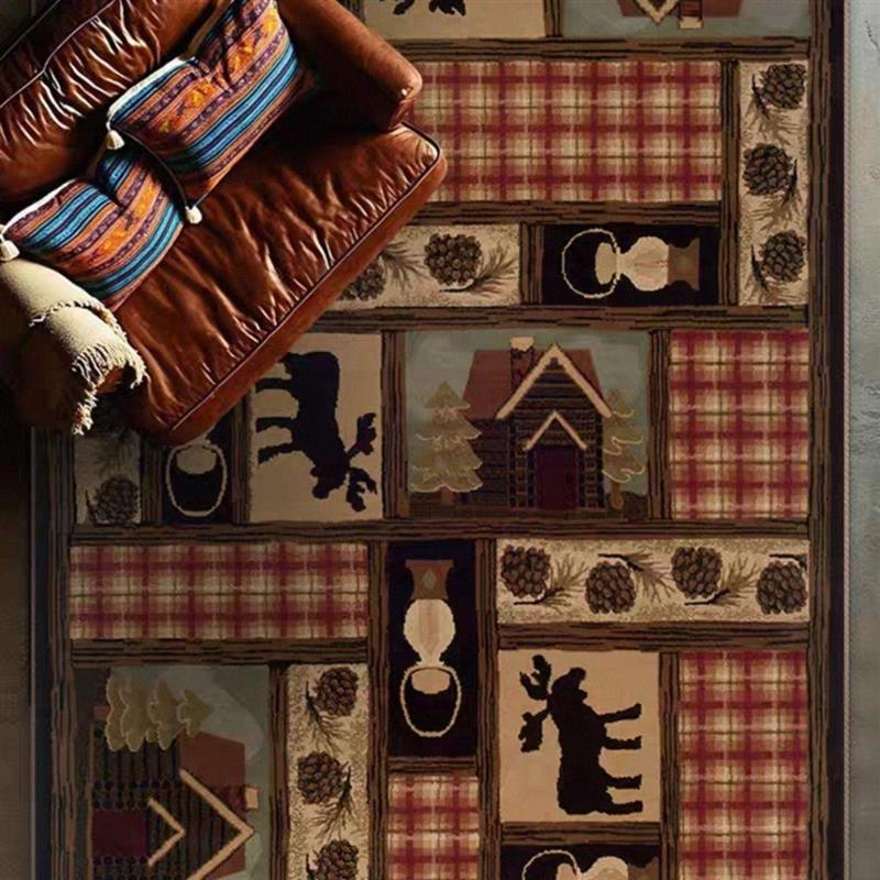 美式客厅茶几毯中古民族风地毯卧室床边毯复古风衣帽间脚垫可定制