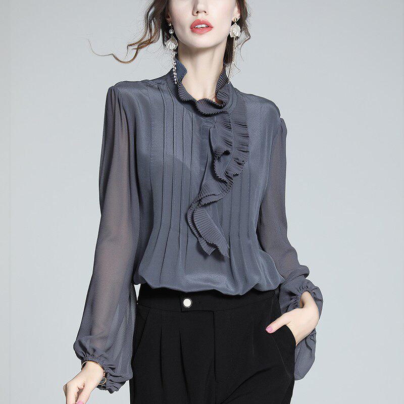 - 雪纺立领长袖衬衫