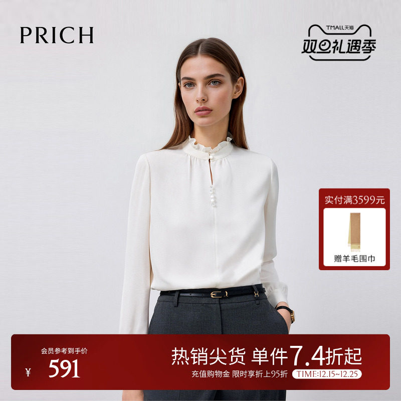 - 立领真丝长袖衬衫 女