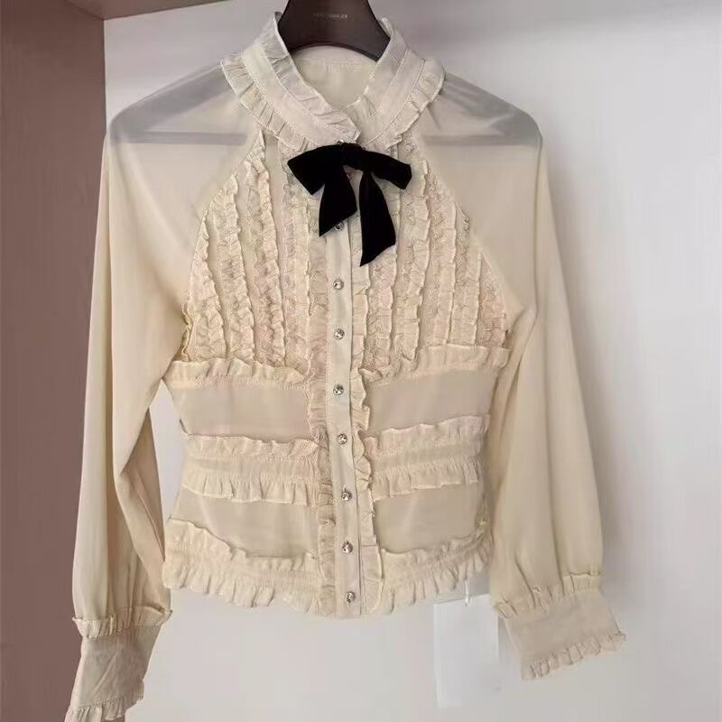 - 蝴蝶结衬衫 荷叶边
