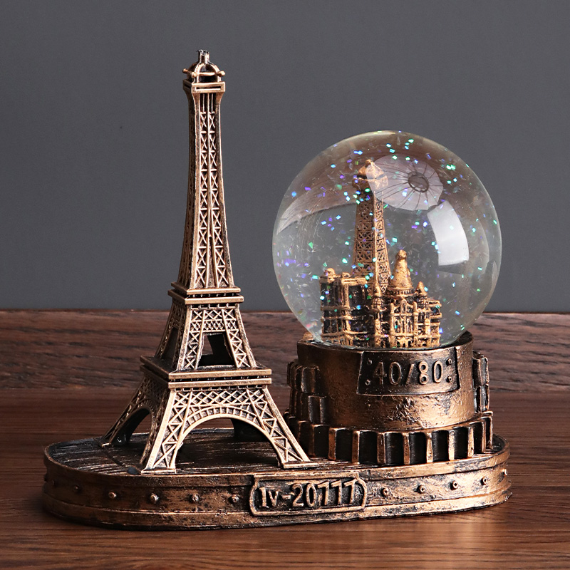 复古巴黎艾菲尔铁塔水晶球创意摆件酒柜装饰品家居客厅桌面小摆设