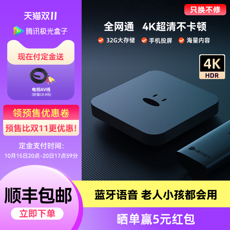 腾讯极光电视盒子家用无线网络机顶盒手机投屏魔盒免费高清播放器