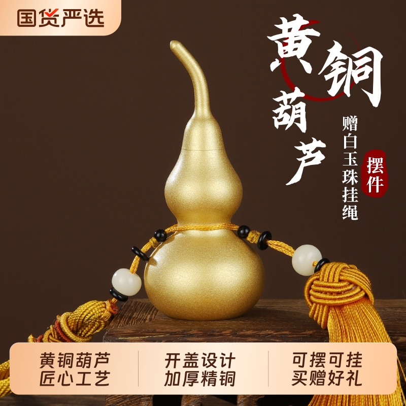 铜葫芦挂件摆件空心开口葫芦客厅黄铜金葫芦玄关办公室装饰品朱砂
