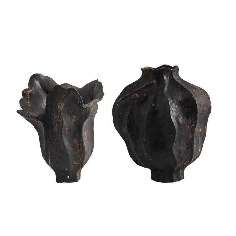 侘寂风中古陶瓷花瓶家居样板间异形插花器软装售楼处玄关饰品摆件