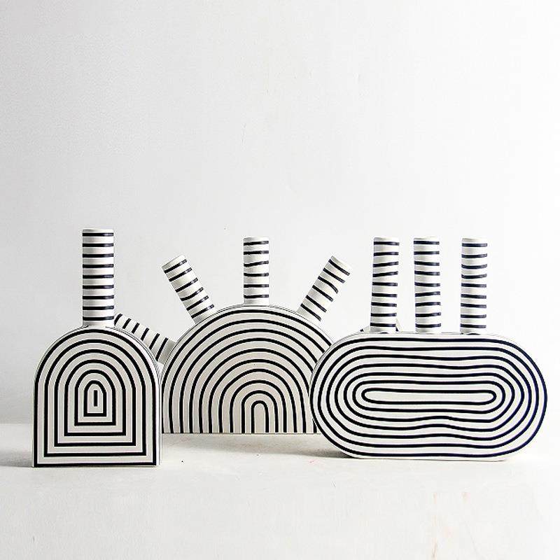 陶瓷高温黑线花瓶北欧现代样板间插花器售楼处工艺品玄关饰品摆件