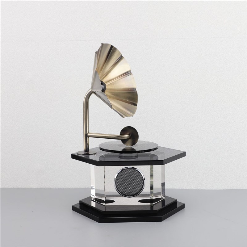 简约现代几何水晶留声机样板房售楼部客厅电视柜桌面玄关饰品摆件
