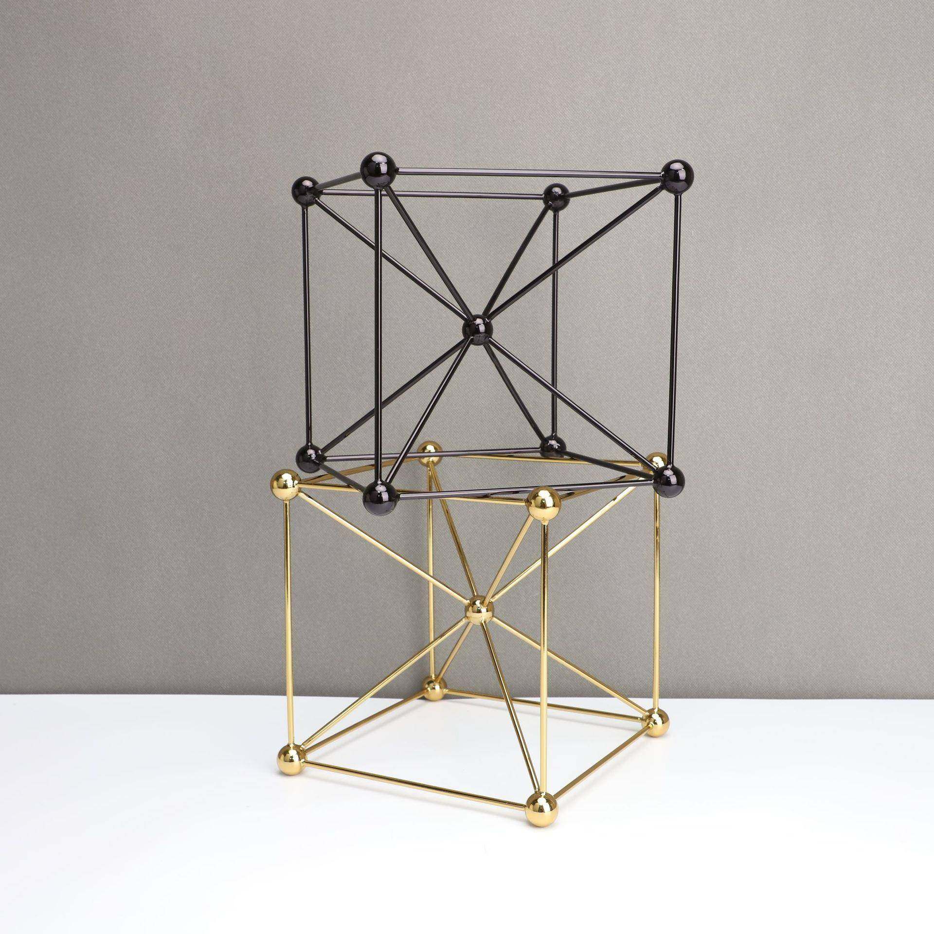 现代简约黑金色正方体框架样板房售楼部卧室书房桌面玄关饰品摆件