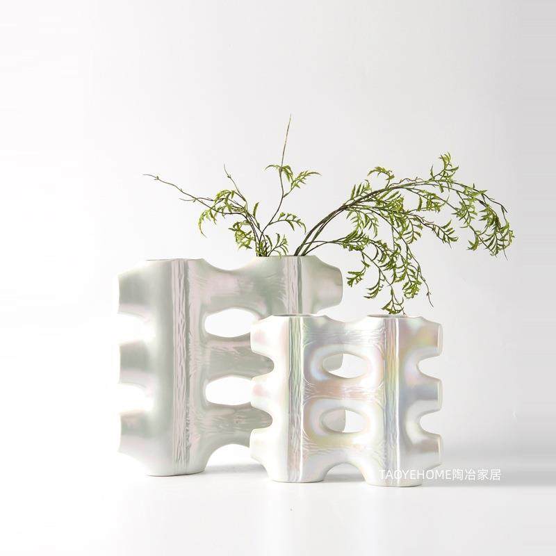 现代轻奢镂空陶瓷花器样板间售楼处桌面艺术花瓶软装玄关饰品摆件